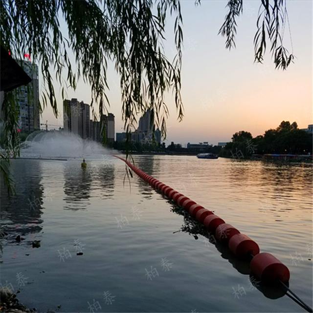 河道拦污浮筒用滑轨滑车来适用水位变化,改滑动磨擦为滑轮滚动摩擦或无摩擦运动,排体在水面上下变动方便灵活。适用水位变化灵敏快捷,无衰老疲软期,可长期自动随水位升降拦渣。